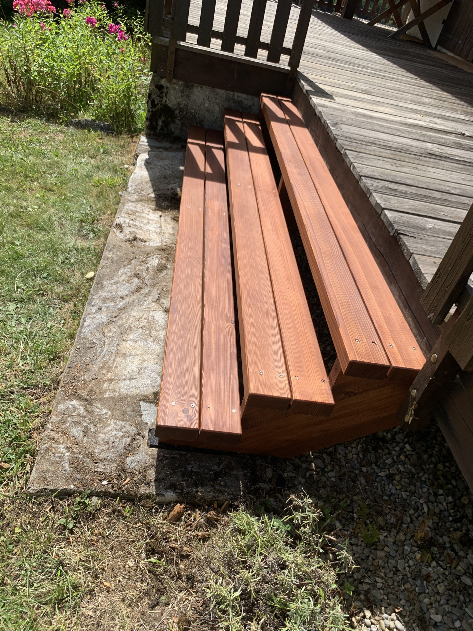 Escalier d’extérieur en mélèze à La Ferrière Partager : Dépose de l’ancien escalier, fabrication et pose d’un escalier en mélèze, bois naturellement classe 3. L’ensemble a été protégé par un saturateur coloré. Durée du chantier : 3 jours Lieu : La Ferrière, Haut Breda, Le Grésivaudan, Isère (38) Retour à la rubrique : Menuiserie extérieure