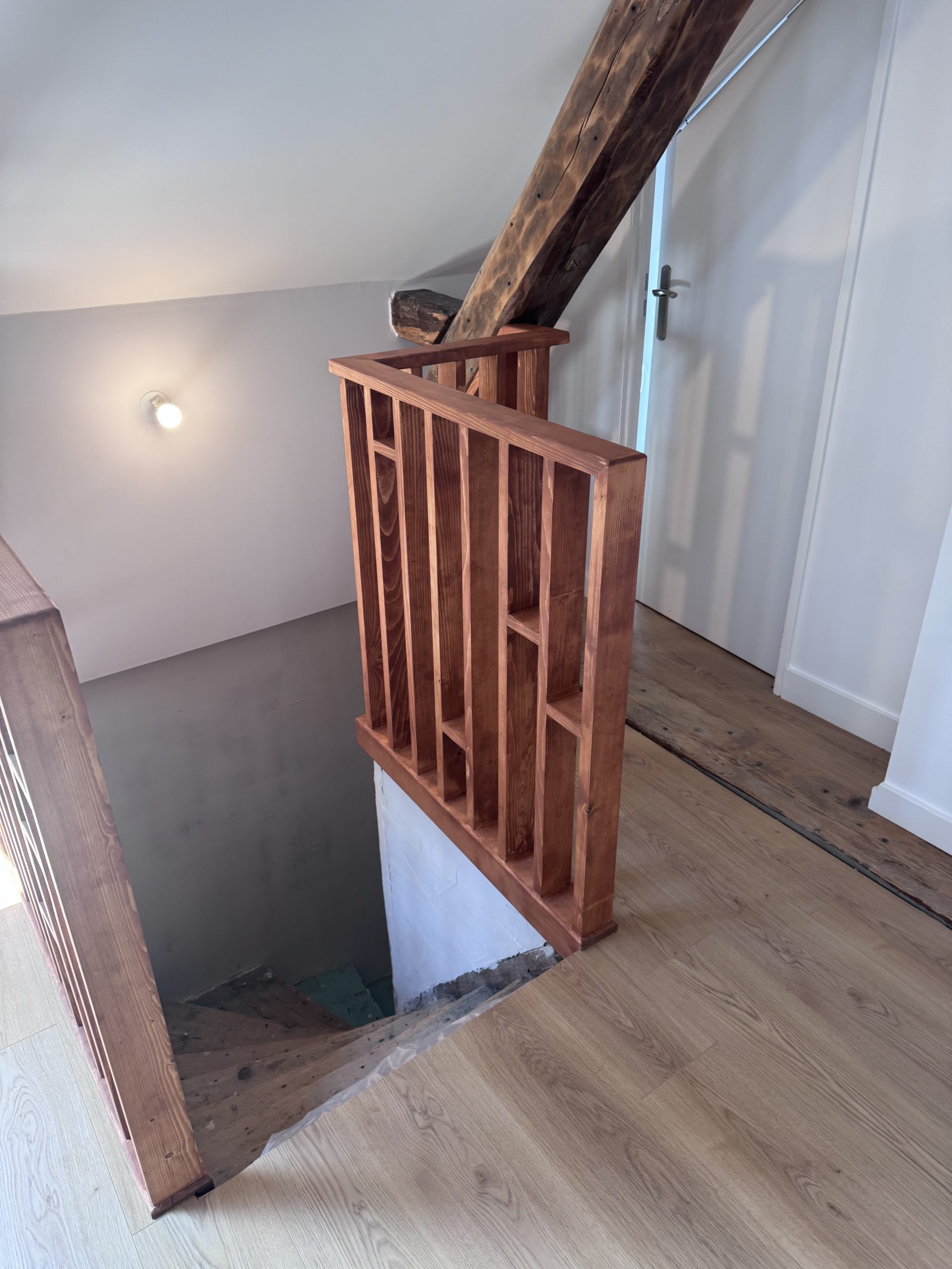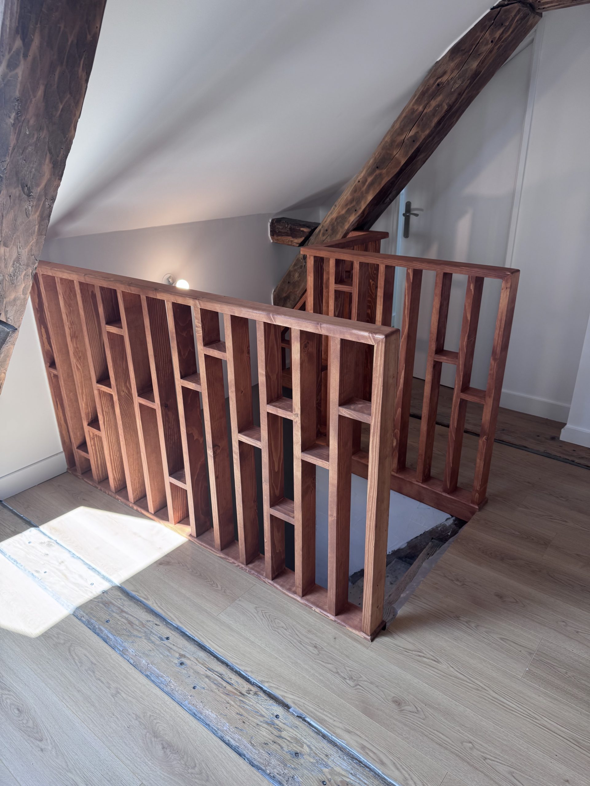Le client souhaitait sécuriser l’accès à son escalier. Plusieurs proposition en 3D lui ont été proposées. la version choisit est un claustra laissant passer la lumière tout en sécurisant l’accès.